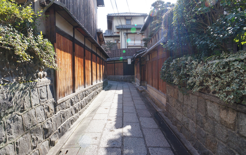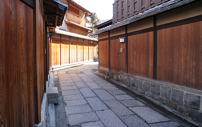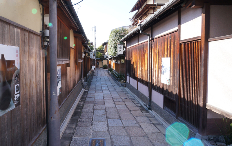 近くにたくさんの神社仏閣があることや「重要伝統的建造物群保存地区」として選定されていることから、さまざまな伝統的建築が保存され、電線類地中化(無電柱化)も進み、京都らしい景観を楽しむことができます。