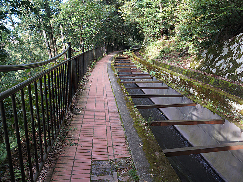 続いて「蹴上疎水公園」を抜けて、導水管と蹴上発電所取水口の間の通路を通り、疎水分線沿いの細い通路を進みます。