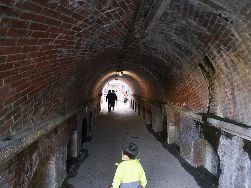 「ねじりまんぽ」というこの聞きなれない言葉は、インクラインの真下を通る高さ約3m、長さ約18mの小さなトンネルのこと。「まんぽ」とはトンネルを意味する古い言葉。