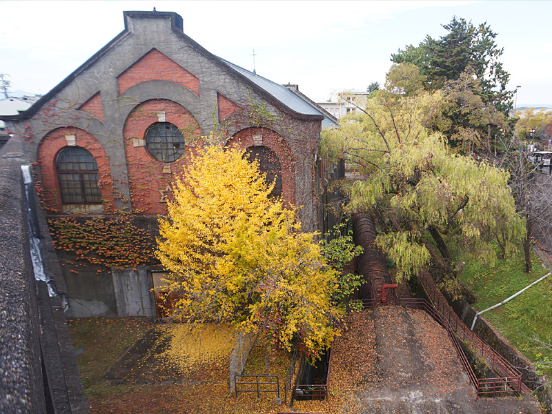 「ねじりまんぽ」を通り、三条通に抜けて右方向、仁王門通り向かって歩くと左手にレトロな建物「蹴上発電所」が見えてきます。