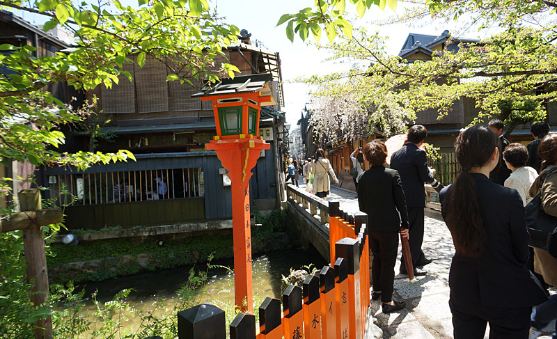 美しい石畳の道とゆったりとした白川の流れ、そこに立ち並ぶ京町屋。その全てが相まって実に京都らしい、まるで絵葉書のような景色は必見です。