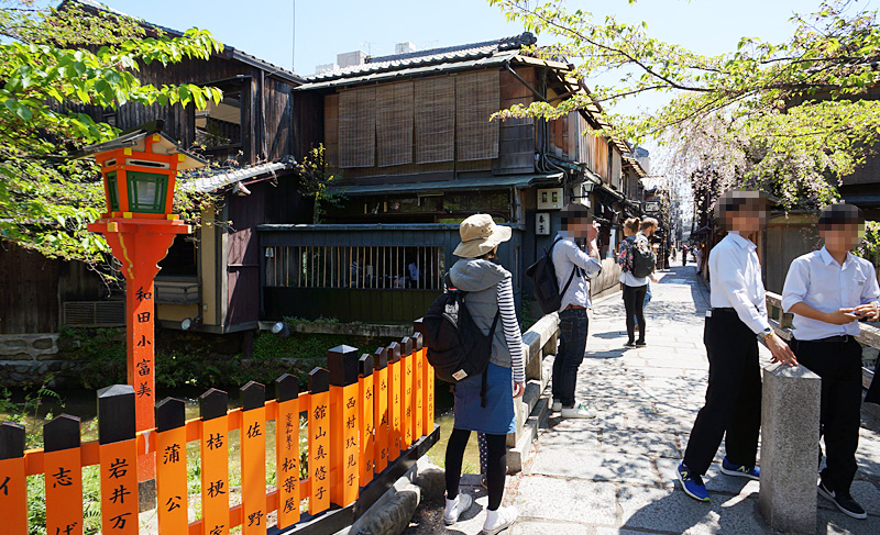 新橋通り沿いには約50軒ほどの京町家が建っており、「本2階建て町家茶屋様式」「本2階建て川端茶屋様式」「本2階建て町家数寄屋風様式」など、さまざまな様式の町屋が混在しています。