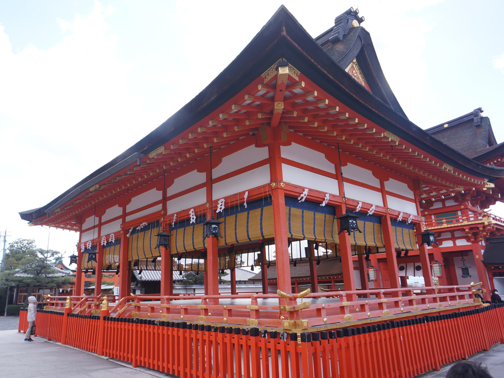 伏見稲荷大社の拝殿は、外拝殿は祭礼などの行事が行われる場所、内拝殿は本殿を参拝する場所と拝殿が2つに分かれているのも特徴的です。 本殿は応仁の乱によって一度焼失したものの、明応8年(1499年)に再建されました。