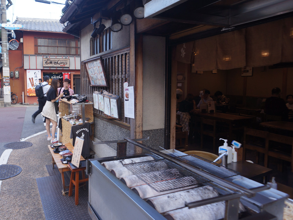 裏参道にはいくつかすずめを提供するお店がありますが、ここ稲福ではすずめが店頭で焼き上げて販売されており、店先にはたっぷりのたれをまとった焼き鳥の香ばしい匂いがたちこめています。
