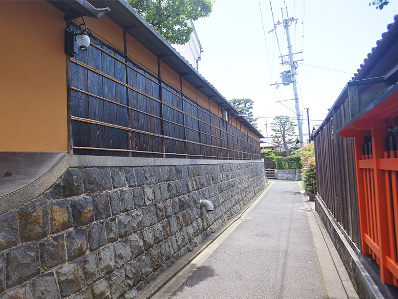 伏見稲荷大社付近の路地や住宅街には、当時京都駅から多くの参拝者を運んだとされる今は無き京都市電の痕跡があちこちにみられます。