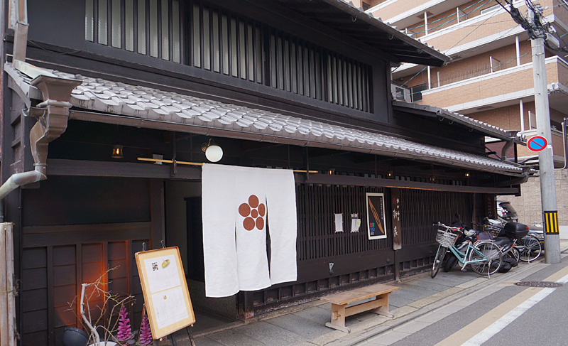 さらに大宮通の反対側・智恵光院通を少し南へ行ったところにある、御簾とのれんがかかった町屋風の建物が「蕎麦屋にこら」。
