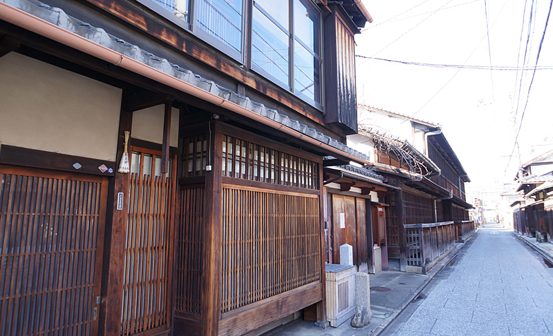 歴史は古く、京都の6大花街(島原・上七軒・祇園甲部・祇園東・先斗町・宮川町)の一つとされていた時期もありましたが、昭和後期から衰退、京都花街組合連合会も脱会し、今では数件の町屋が残る隠れたスポットとなっています。