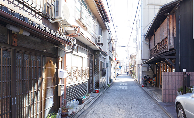 町屋の数は少ないものの、少し路地を入ると昭和の雰囲気漂う民家が並び、京町屋とレトロな街並みが混在する不思議な空間になっています。