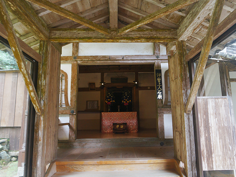 弾誓上人石廟の奥の洞窟内には弾誓上人のミイラが納められた石棺(即身仏)があり、 弾誓上人のミイラは、今も即身仏として古知谷阿弥陀寺に安置されています。