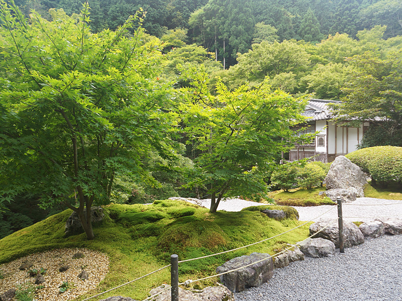 この古知谷阿弥陀寺は、人気の三千院とは違い、ほとんど貸し切り状態で寺院から枯山水のキレイな庭園をゆっくり座って眺めていられる超穴場スポットです。