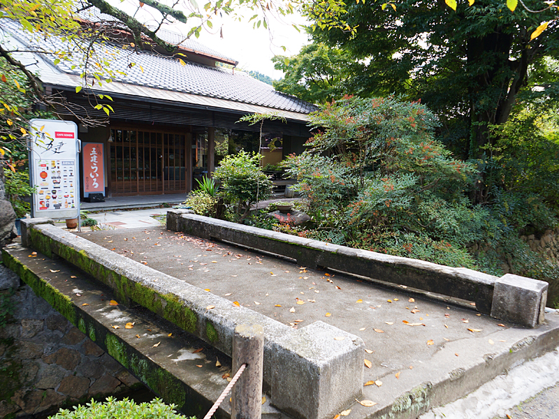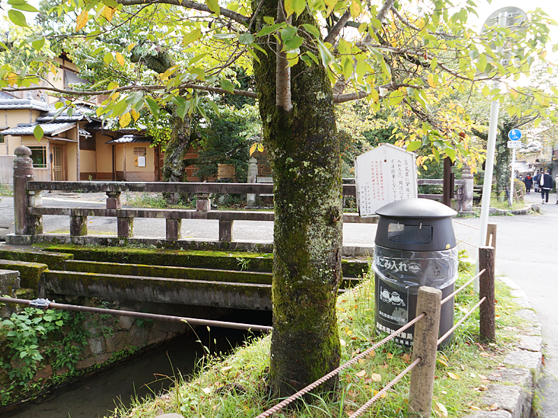 敷石が設置された小道と小川の間に柵はなく、これがいい風情のある景色となっているのですが、小川の水面までは高い段差があり水量も少ないため落ちたら危ないので、小さい子供には目を離さないよう注意して下さい。