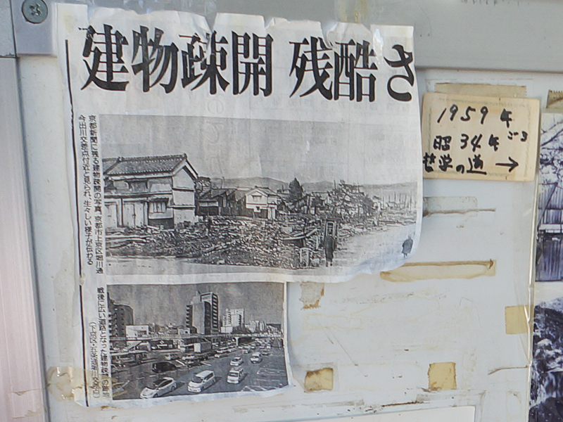 この敷石は歩行者が歩きやすいようにと、1987年(昭和53年)に廃止された京都市電の軌道敷石を転用したものです。