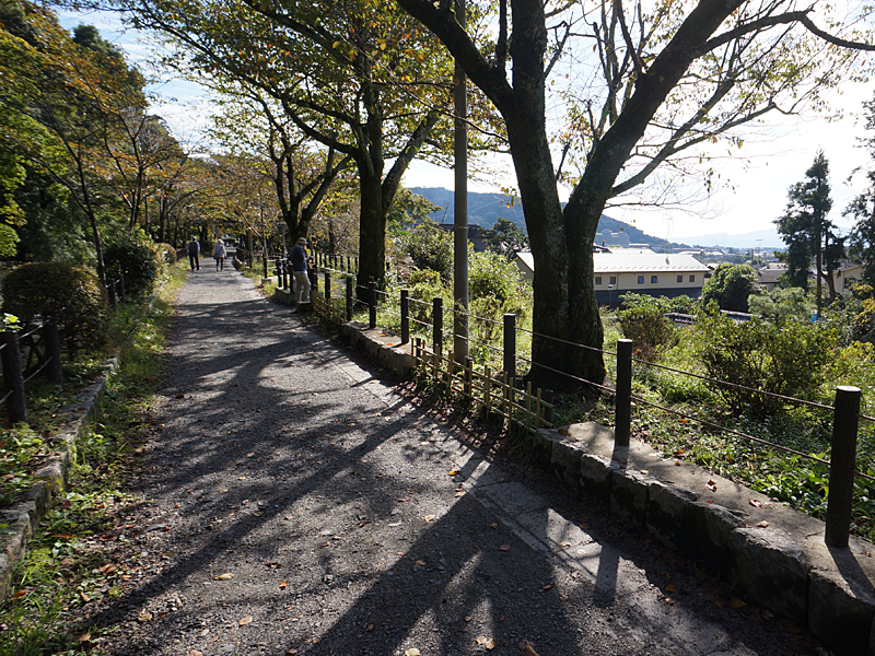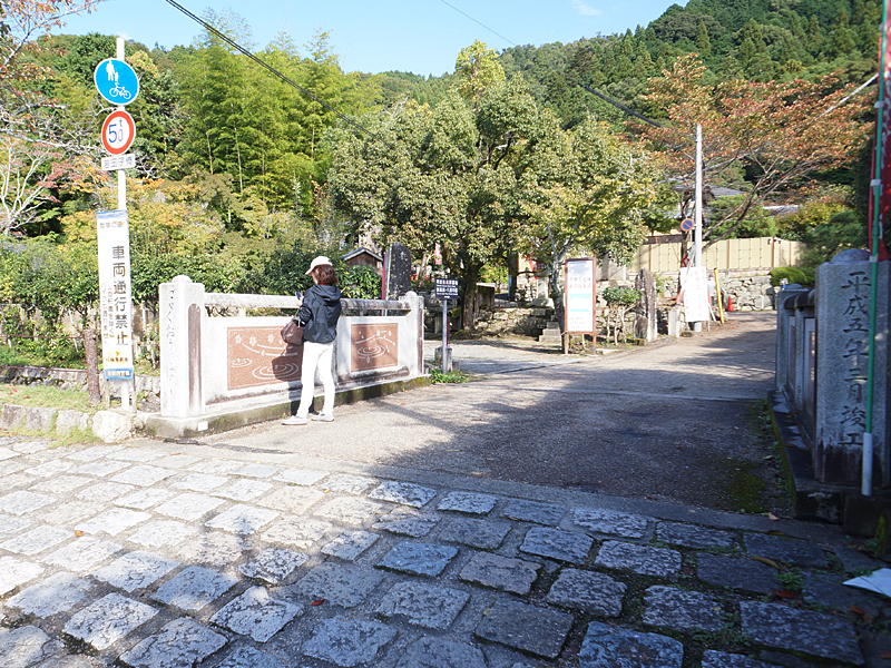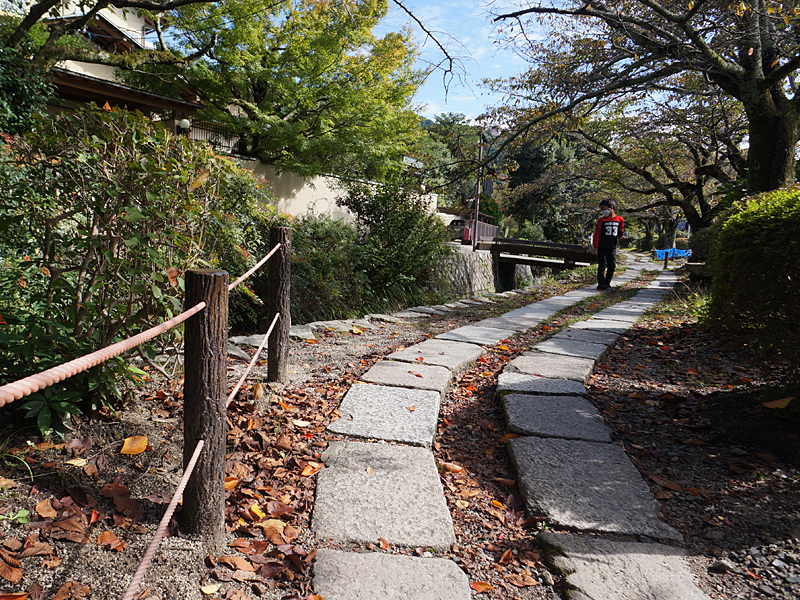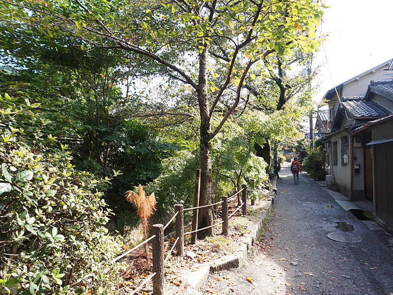一部敷石の遊歩道のない箇所は細くなり、個人宅の民家の前なので静かに通りすぎましょう。