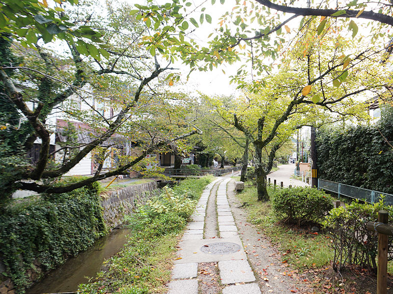 京都「哲学の道」とは、琵琶湖疏水(※)に沿って銀閣寺西の今出川通銀閣寺橋を北端として続く約1.5kmの散歩道です。